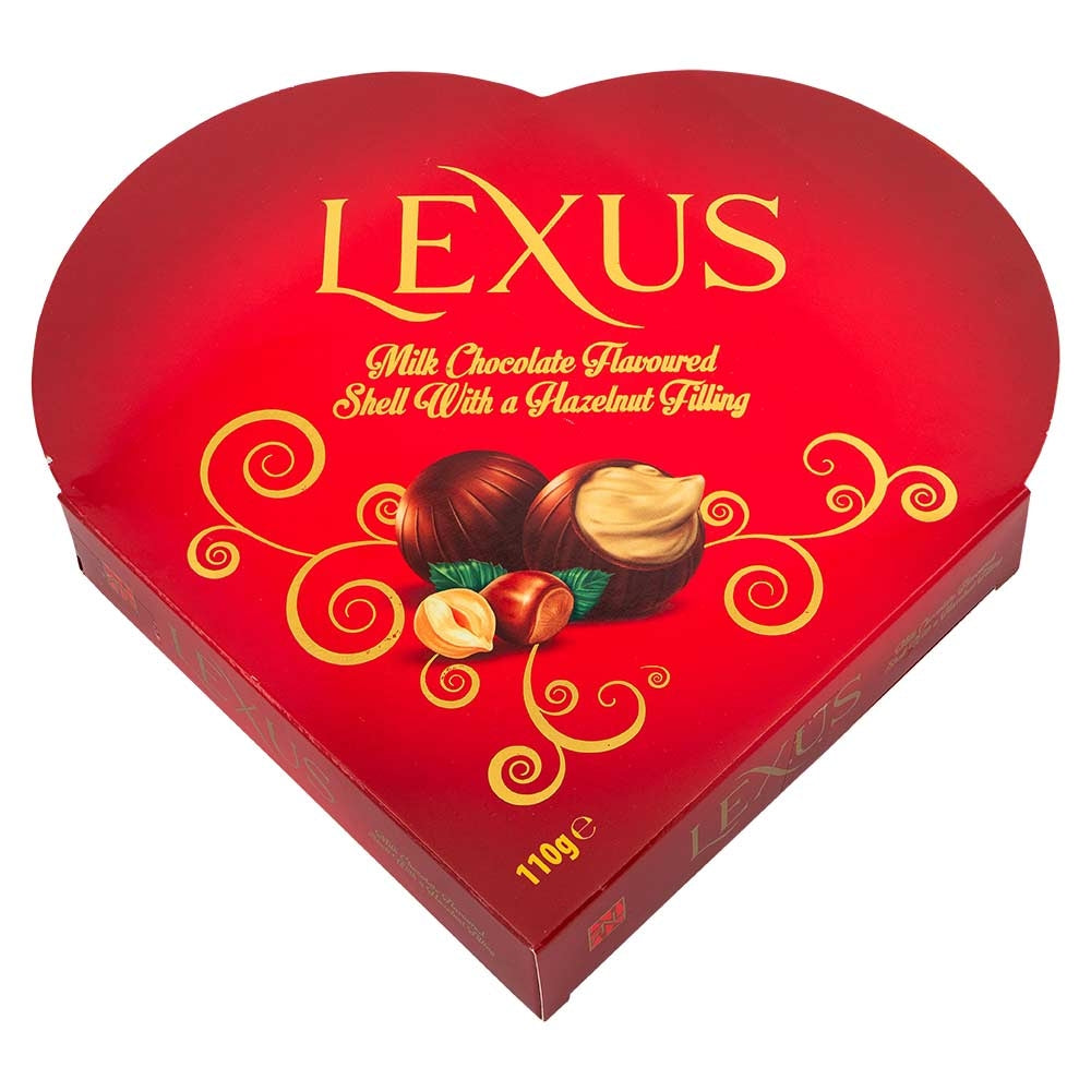 Treat yourself or a loved one to the Lexus Love Box. These delicately crafted milk chocolate flavoured shells. with their delicious hazelnut filling. come presented in a beautiful red. heart shaped box for the added wow factor.